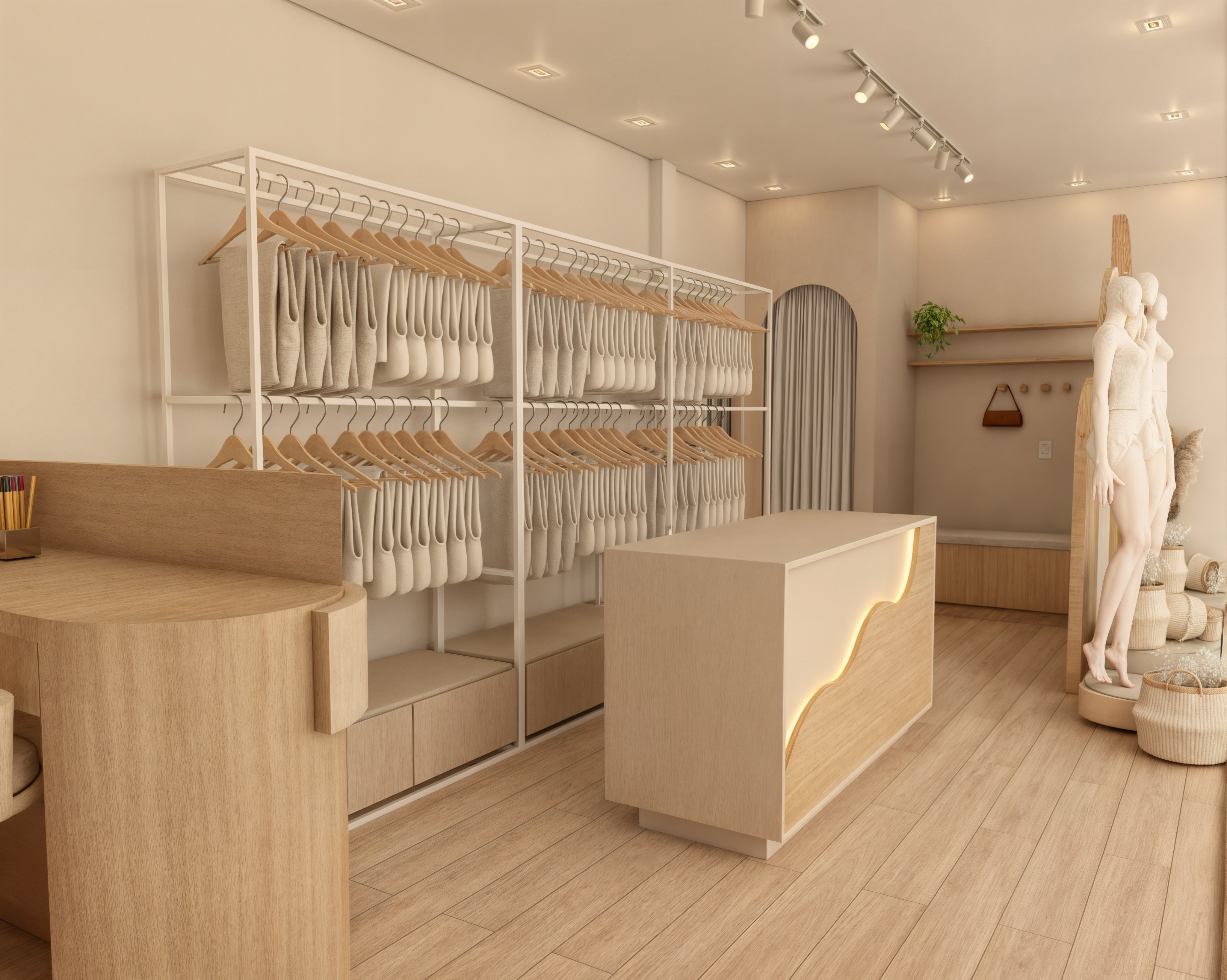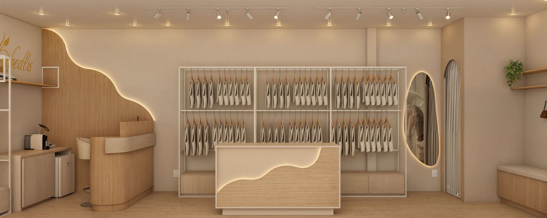 A Loja Chedlis, especializada em roupas femininas em Goiânia, encontrou sua nova identidade ao abraçar a atemporalidade dos tons neutros e amadeirados. Com essa paleta de cores sofisticada, alcançamos um resultado que exala elegância e requinte, criando um ambiente acolhedor e inspirador para as clientes. A combinação de texturas naturais e linhas orgânicas reflete agora a nova cara da Chedlis, e se tornou um complemento para oferecer moda feminina de alta qualidade em um espaço que é ao mesmo tempo moderno e sofisticado